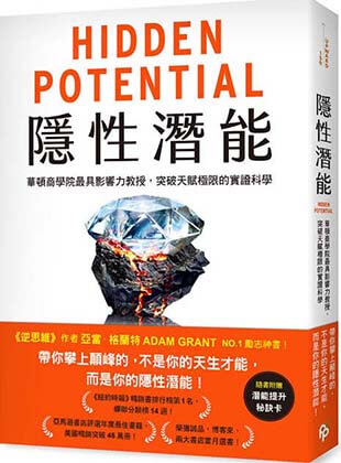 在《隱性潛能》(Hidden Potential)書中,作者亞當‧格蘭特挑戰了「天賦至上」的迷思。這本書的核心思維是成功在於「性格」,而非「天賦」。格蘭特認為,所謂的「隱性潛能」,就是指那些可以透過培養性格、建立動機系統和創造機會來釋放的能力。他鼓勵我們專注於學習的歷程,而不是最終的成果;擁抱不適與錯誤;並找到能激發個人進步的成長脈絡。這本書強調的是,每個人都有被低估的潛力,關鍵在於我們如何去發掘和培養它。