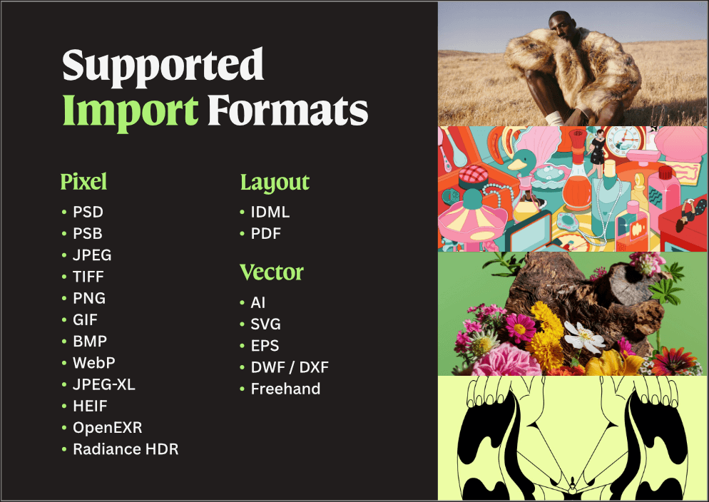 你可在 Affinity 工具裡面,自由切換 Vector、Pixel 及 Layout 這三個工具,從向量繪圖、影像處理到頁面排版,只要這一個軟體工具就搞定。此軟體工具採用通用檔案格式 (.af) 存檔,並支援將你的設計直接匯出至 Canva 平台,以方便繼續進行進階編輯和整合作業。