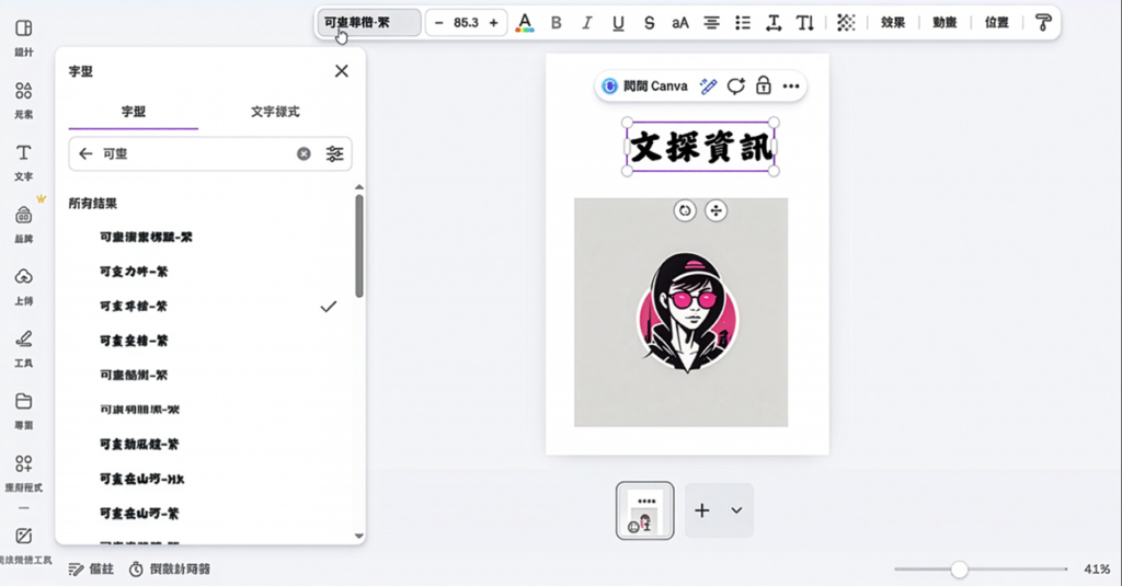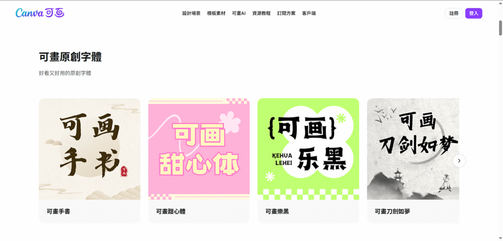 「可畫字體庫」(如 Canva 可畫黑體、Canva 可畫細黑),其實是 Canva 與漢儀字庫深度客製的版本。如果您在漢儀官網尋找,應該是找不到完全同名的字體。