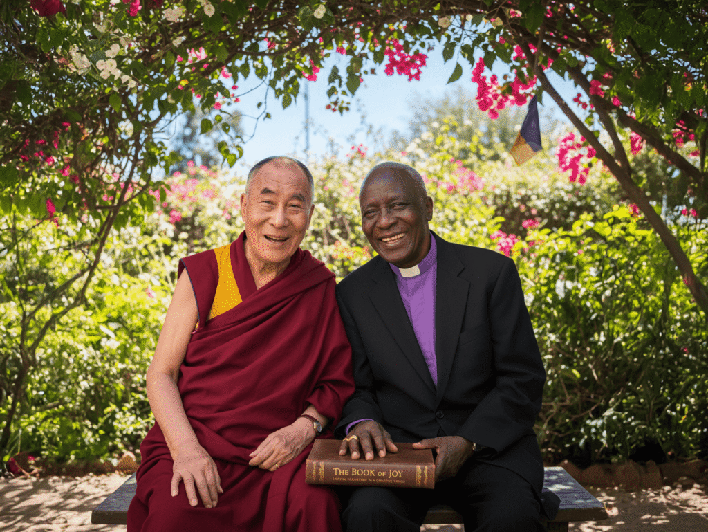 兩位諾貝爾和平獎得主:達賴喇嘛和屠圖大主教,他們因經歷相同的苦難,卻仍保持著喜悅和慈悲的特質,而結為「心靈上的頑皮兄弟」。這場「世紀對談」是兩位在印度的達蘭薩拉相聚五天,解答一個永恆的問題,分享如何穿越苦痛,重啟喜悅的智慧。並由第三位作者道格拉斯.亞伯拉姆(Douglas Abrams),記錄了兩位大師長達五天的精彩對談,並成書《最後一次相遇,我們只談喜悅》。